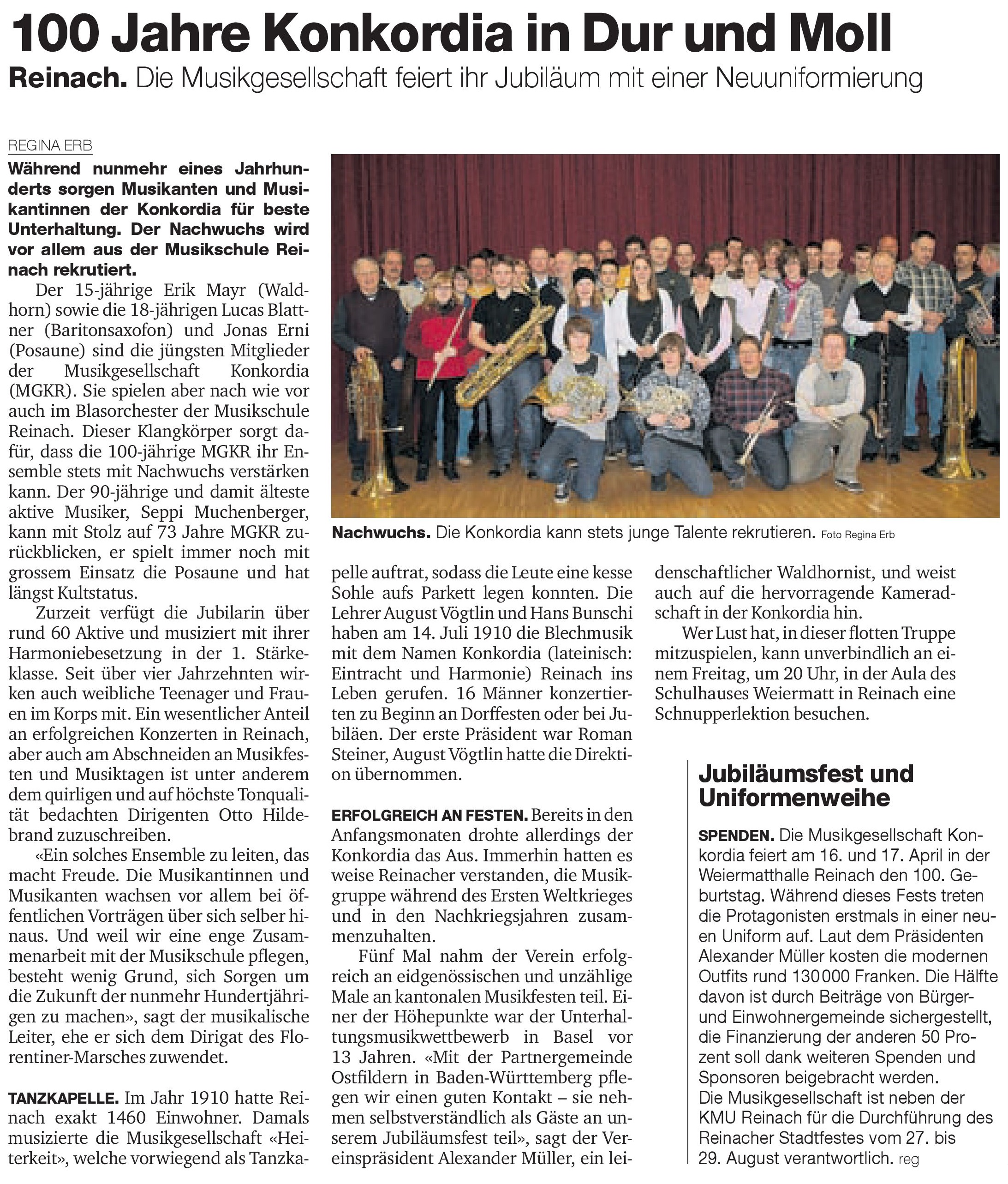 Basellandschaftliche Zeitung, 20. April 2010, Jubiläumskonzert |
