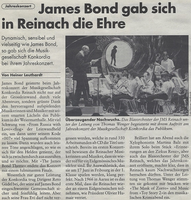 Wochenblatt Schwarzbubenland & Laufental, 15. Juni 2017, Jugendmusikpreis in Reinach Wochenblatt, 24. März 2017, Jahreskonzert