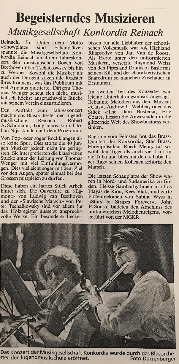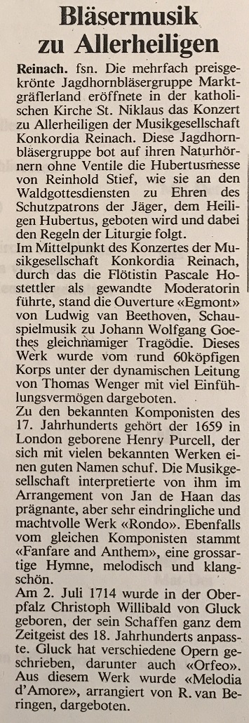 Basellandschaftliche Zeitung, 1. November 1993, Allerheiligenkonzert mit Therwil |