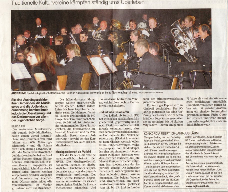 Basellandschaftliche Zeitung, 20. April 2010, Jubiläumskonzert |