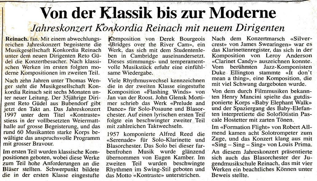 Basellandschaftliche Zeitung, 11. November 1997, Allerheiligenkonzert |