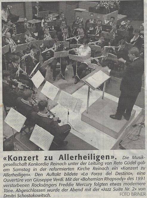 Reinacher Zeitung, 1. November 2001, Allerheiligenkonzert |