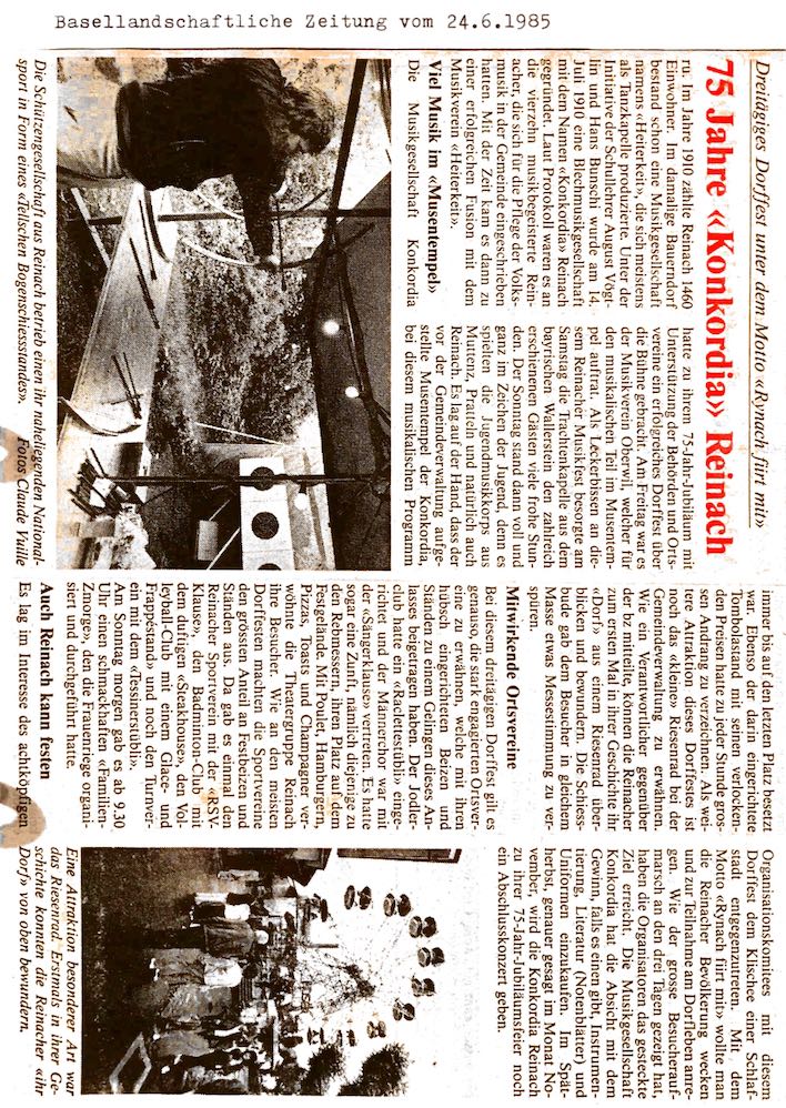 Basler Zeitung, 24. Juni 1985, Jubiläumsfest 75 Jahre MGKR |