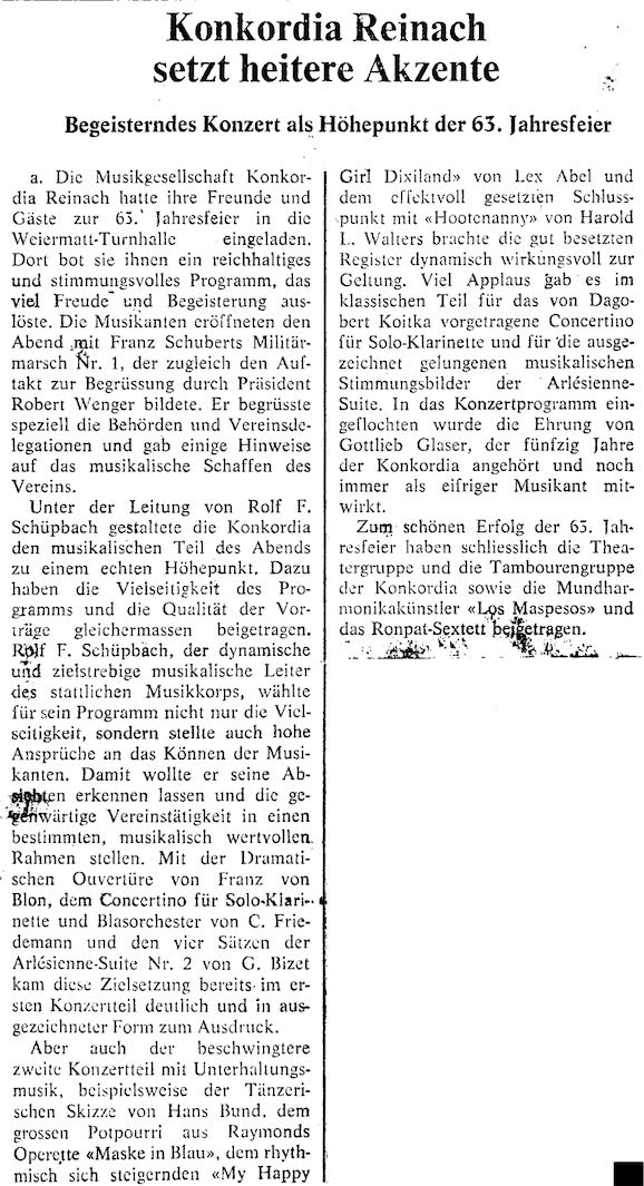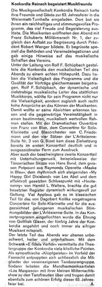 Basler Nachrichten, Februar 1973, Jahreskonzert |