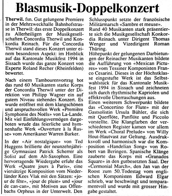 Basellandschaftliche Zeitung, 1. November 1993, Allerheiligenkonzert mit Therwil |