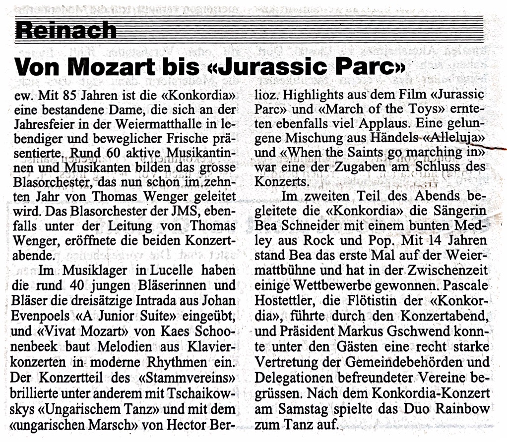 Wochenblatt Schwarzbubenland & Laufental, 15. Juni 2017, Jugendmusikpreis in Reinach Wochenblatt, 24. März 2017, Jahreskonzert